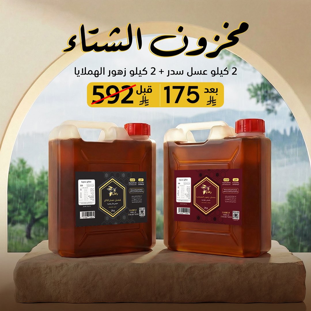 عرض 2 كيلو عسل سدر كشميري + 2 كيلو عسل زهور الهملايا - عبوات توفيرية | من " رضاب "